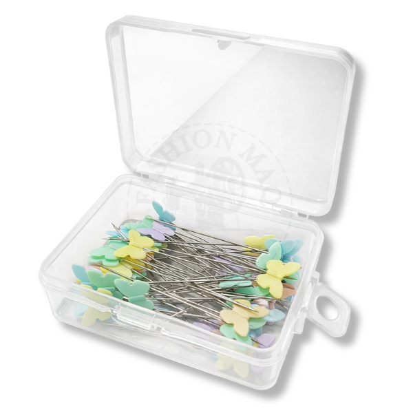 Alfinetes ideais para costura, patchwork e artesanato, com cabeça em formato de borboleta que facilita o manuseio e a visualização durante o trabalho.
