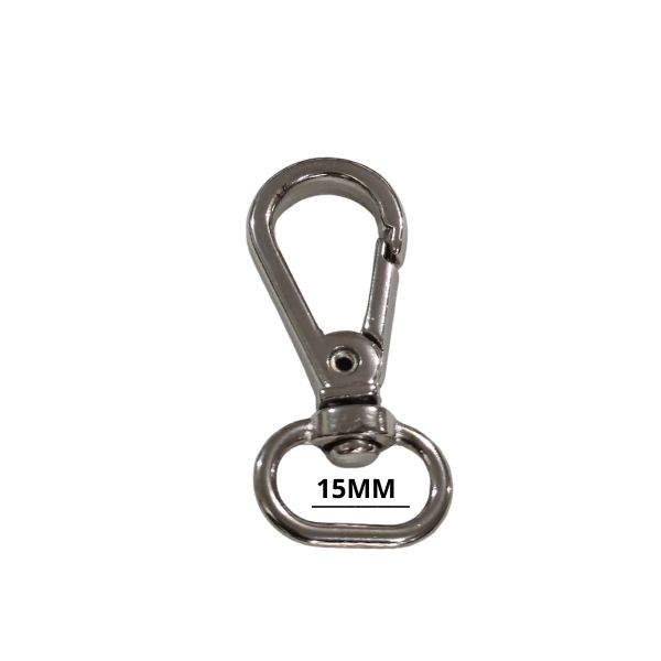 O Mosquetão Niquelado 15mm MS93 é ideal para quem produz bolsas, carteiras, necessaires, mochilas e artesanato em geral. Feito em metal resistente, oferece segurança, durabilidade e um acabamento elegante para suas peças.